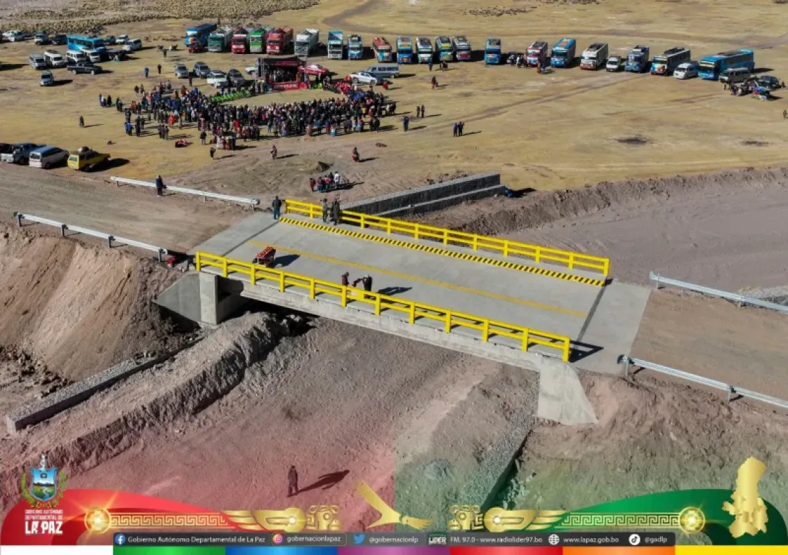 El gobernador del departamento de La Paz, Santos Quispe Quispe, realizó la entrega oficial del puente vehicular Irpa el 11 de julio de 2024, en el municipio de San Andrés de Machaca de la Provincia Ingavi. Este puente, que tiene una longitud de $20.60 \text{ m}$, representó una inversión de Bs 4,1 millones, cumpliendo con el compromiso de mejorar la infraestructura vial y ofrecer mejores condiciones a los habitantes de la zona.¿Deseas que organicemos más proyectos de la Provincia Ingavi o de otra región?