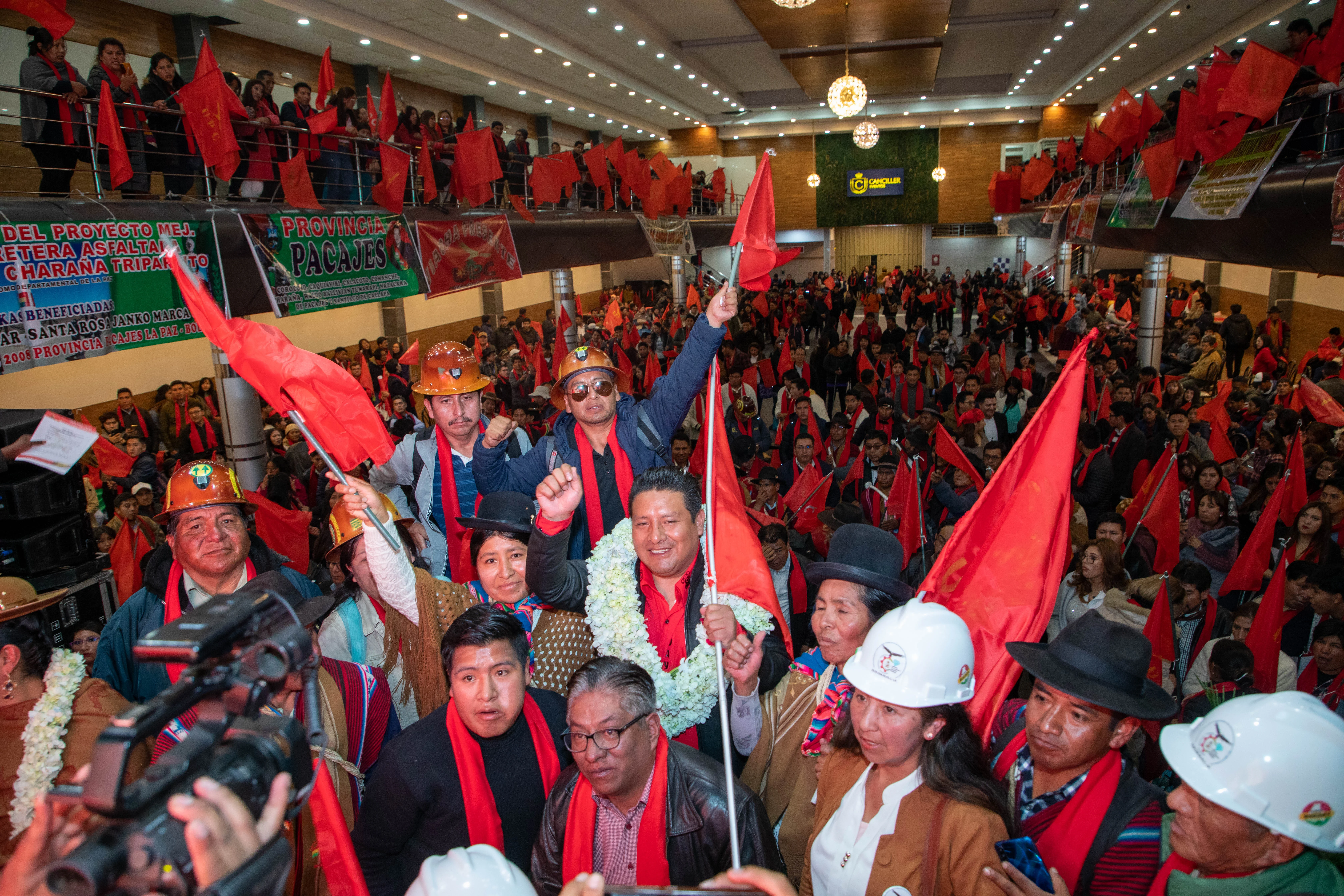 Dirigentes de diferentes sectores sociales y autoridades originarias de las 20 provincias brindaron respaldo al presidente de UPC. La actividad proselitista se desarrolló en un centro social de la ciudad de El Alto, bajo un marco de música y danzas tradicionales de La Paz.