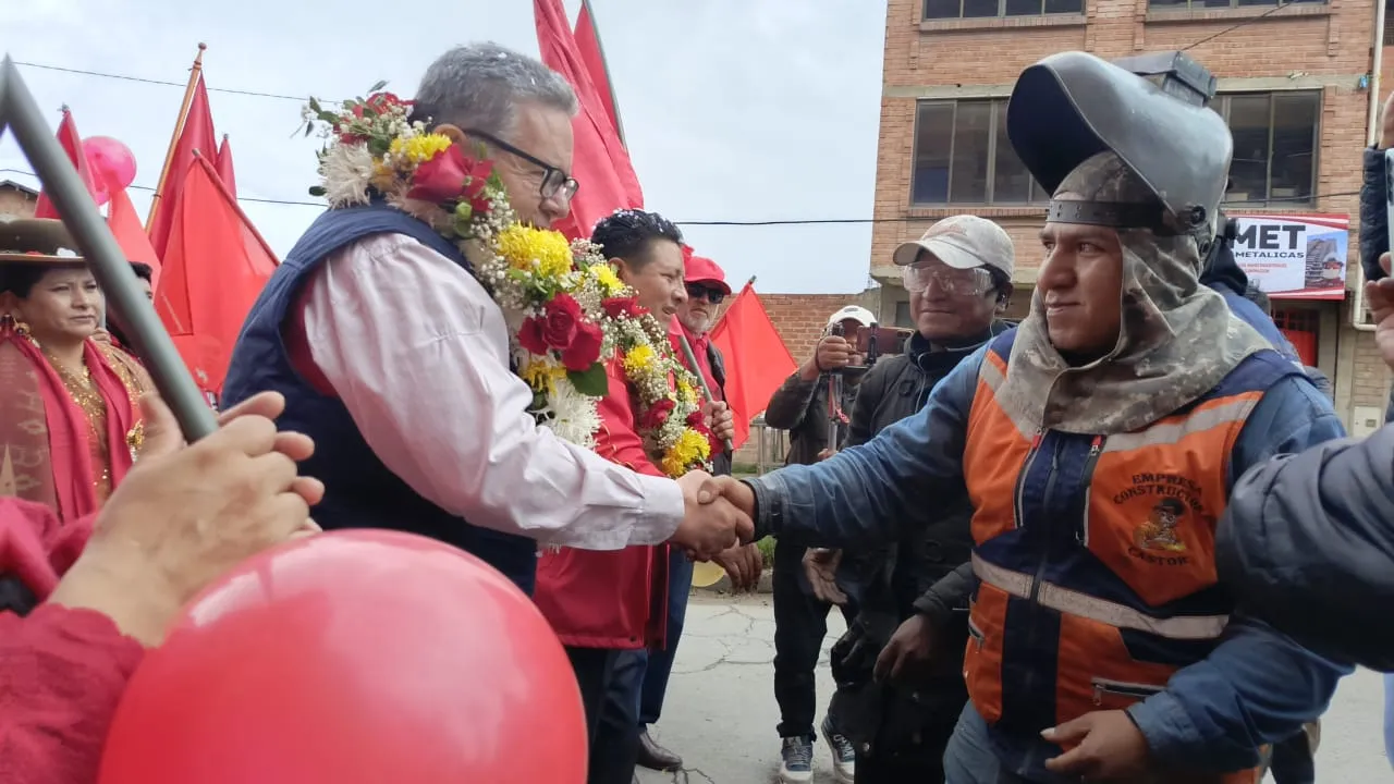 En el recorrido, Santos Quispe, Luis Eduardo Siles y otros candidatos a concejales y asambleístas departamentales recibieron los saludos y cariños de la población, incluso desde los vehículos ocasionales.