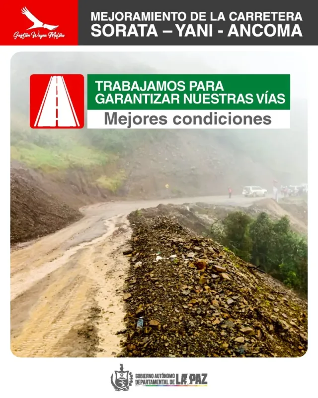 El Gobernador de La Paz, Santos Quispe, visitó la carretera Sorata - Yani - Ancoma para realizar una inspección del proyecto de mejoramiento vial que se lleva a cabo en su primera fase en la provincia Larecaja. El proyecto se encuentra en ejecución y busca mejorar significativamente la transitabilidad y conectividad de la zona. La inversión destinada a esta primera fase asciende a más de Bs 24,6 millones.