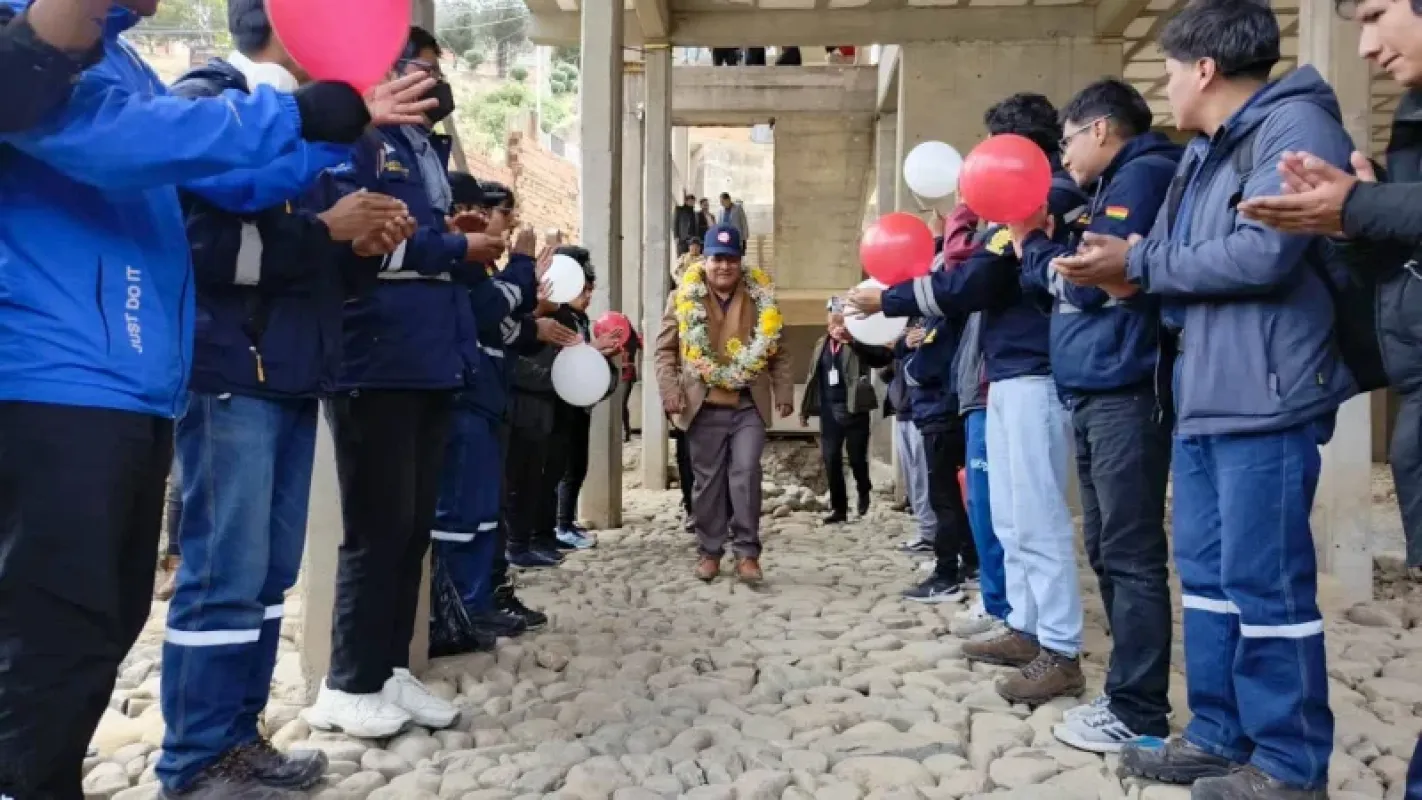 El Gobernador del departamento de La Paz, Santos Quispe, realizó una inspección en el lugar de trabajo y verificó que el avance de las obras civiles llega al 62% del segundo bloque del I. T. Escuela Industrial Superior Pedro Domingo Murillo. Este proyecto, que tiene una inversión de Bs 15 millones, es un logro histórico para la comunidad educativa, ya que representa la primera mejora de su infraestructura en 70 años.