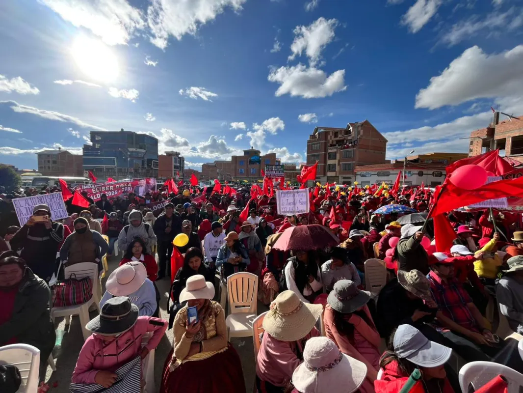 "El hermano Eliser está en primer lugar (en la reciente encuesta de Ciesmori), el hermano Santos está en el tercero; llegaremos al primer lugar. No podemos permitir que los políticos corruptos de siempre vuelvan al poder. Esa gente que ha robado y mentido, ahora quiere ponernos piedras en el camino", afirmó en la lengua de aymara.