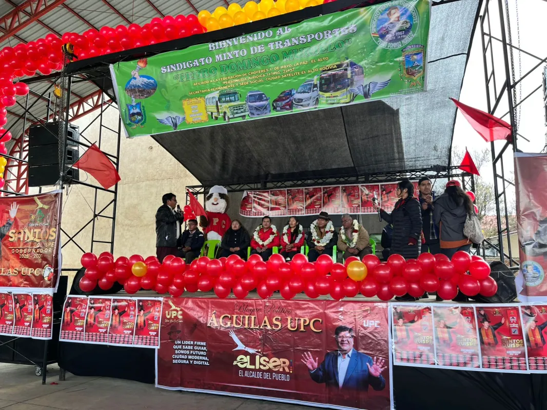 El Sindicato de Transporte Público Pedro Domingo Murillo, de Ciudad Satélite, Distrito 1 de El Alto, proclamó a Santos Quispe, de Unión Por el Cambio, como el candidato idóneo para ocupar el cargo de Gobernador del departamento de La Paz, en un acto que contó con la participación de afiliados y vecinos.