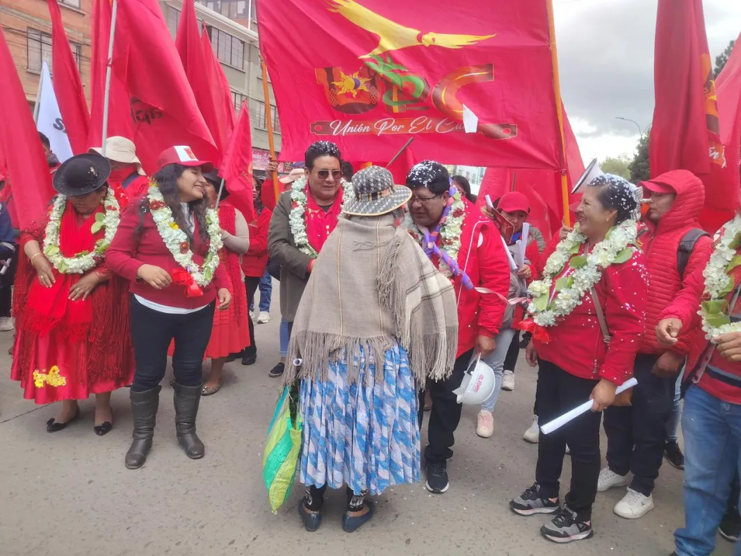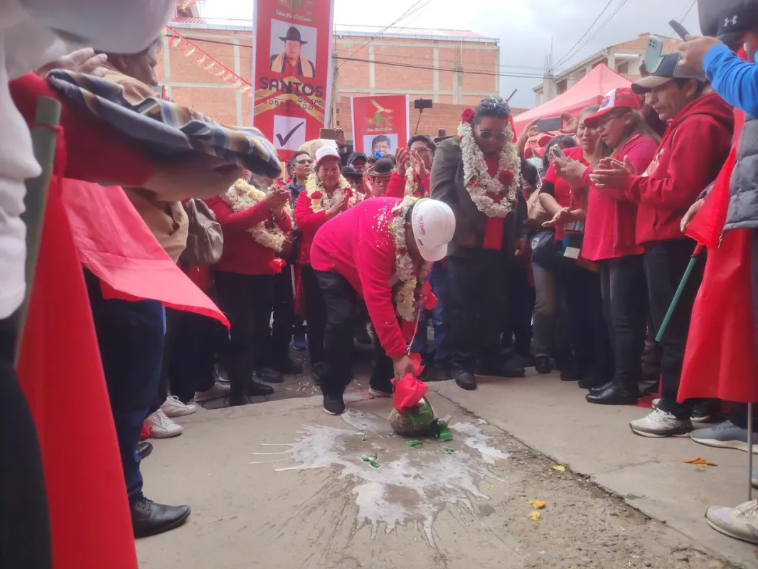 En la ocasión, la marea roja se expandió por diversas zonas con la presencia masiva de ciudadanos alteños y paceños. En una de las casas de campaña, Santos Quispe propuso la construcción de casas de acogida para la población en situación vulnerable.